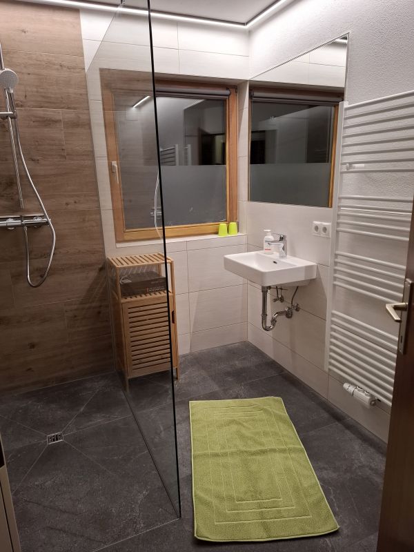 - Badezimmer mit Dusche, WC und Becken. Gegen einen Aufpreis von 30 EUR kann ein zweites Badezimmer mit derselben Ausstattung genutzt werden.